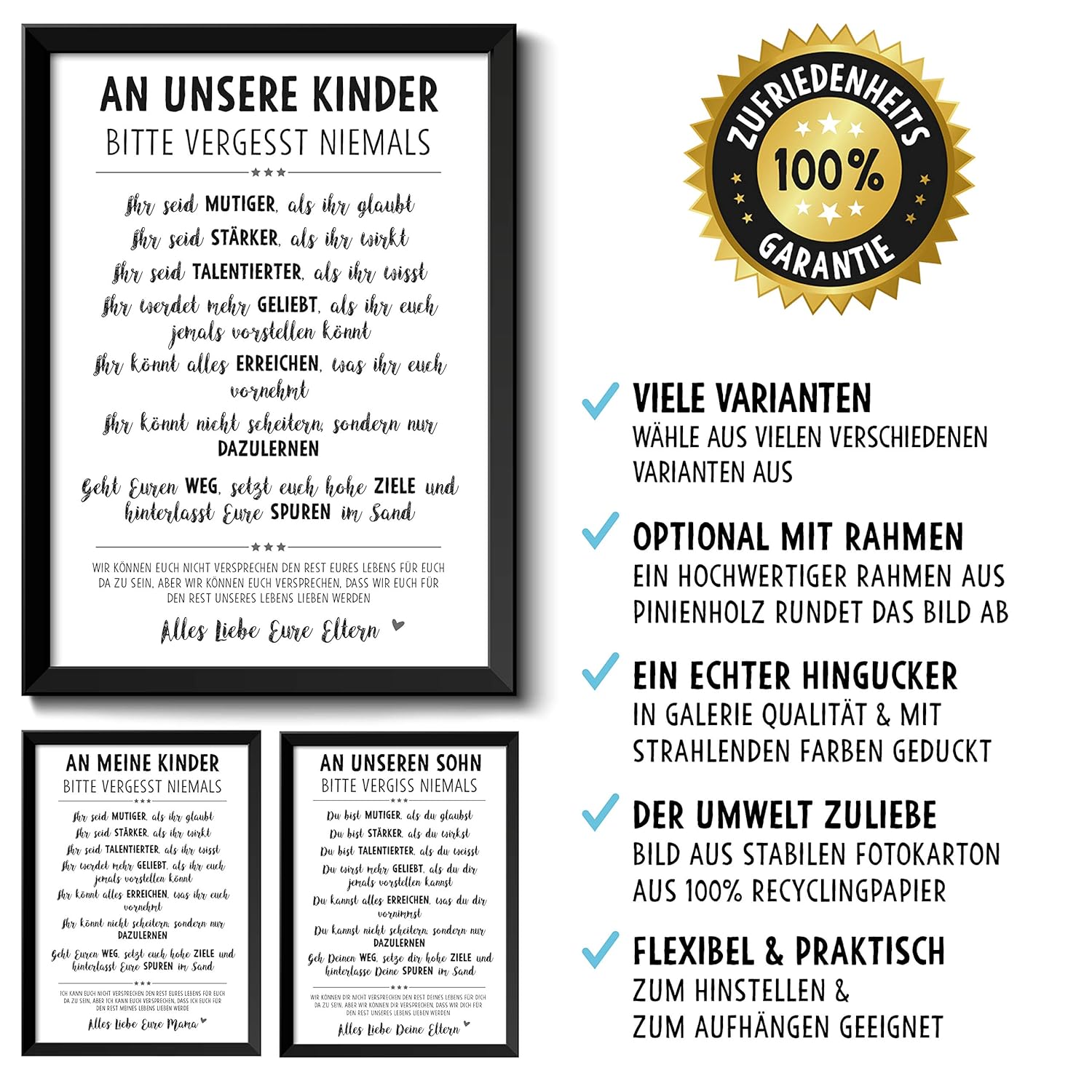 Vergiss Niemals Tochter Sohn Bild Mit Spruchen Lebensweisheiten Holz Rahmen Optional Geschenkidee Geburtstag Kinder Amazon De Handmade