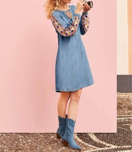 Heine Jeanskleid M Stickerei Hellblau Kleid Gr 34 36 38 40 42 44 46 48 Ebay