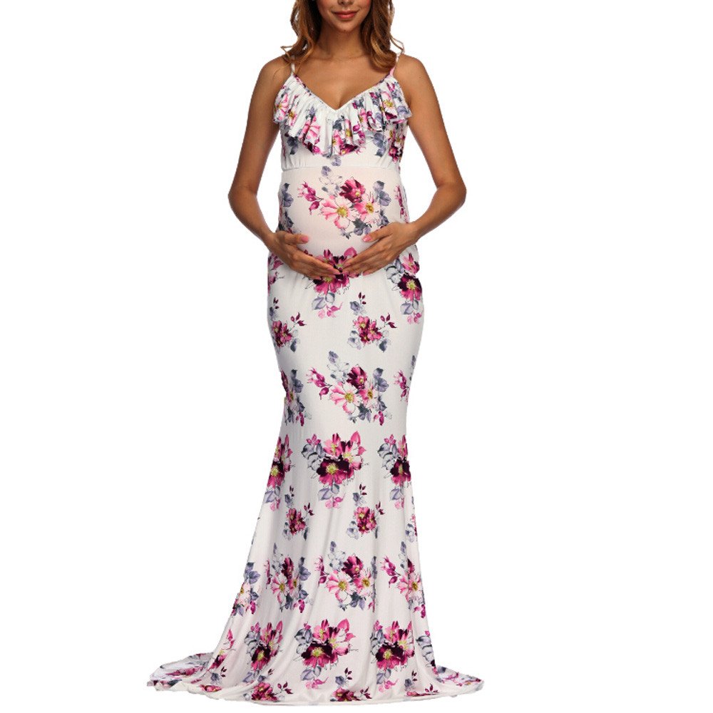 Weiss Patchwork Spitze Spaghettitrager Ruckenfreies Elegant Umstandskleid Maxikleid Fur Schwangere Fotoshooting Sale