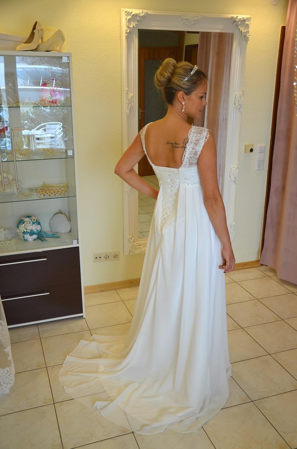 M M C Charlotte Umstandskleid Mit Spitze Weiss Chiffon Hochzeit Standesamt Schwangerschaft Schwangerschaftskleid Abendkleid Cocktailkleid Abendmode Weiss 38 Amazon De Bekleidung
