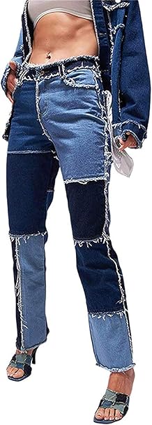 Onsoyours Damen Stretch Jeans Streetwear Knopfe Gerade Jeanshose Mit Hohem Bund Frauen Mode Patchwork Pants Retro Weites Bein Denim Hosen Bootcut Schlagjeans Hip Hop Freizeithose Mit Taschen Amazon De Bekleidung