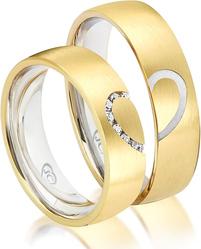 Eheringe Mit Herzform Partnerringe Trauringe Verlobungsringe Freundschaftsringe In Gold Plattiert 5 50mm Breit Mit Gravur Und Steinen Amazon De Schmuck