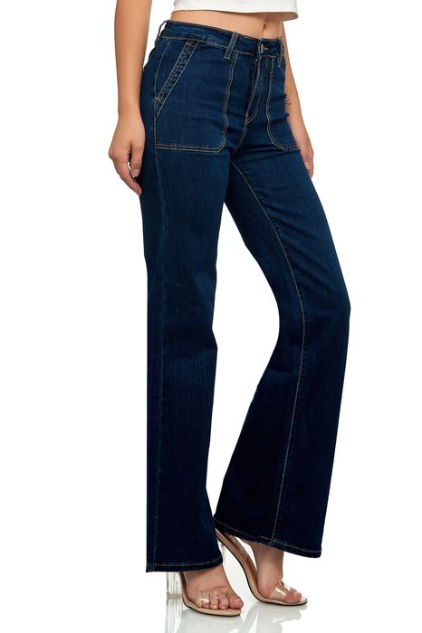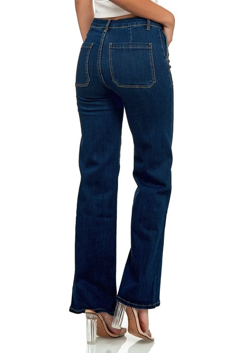 Dark Blue Pockets Bell Bottoms Long Flare Jeans Super Flare Jeans Denim Fashion Boho Denim