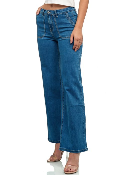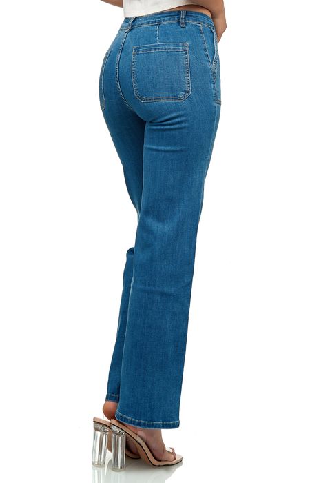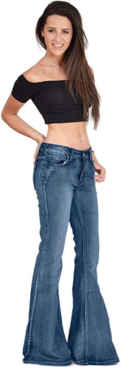 Damen Long Jeans Schlaghose Fit Party Hufthose Schlank Bequem Pocket Trousers Wish