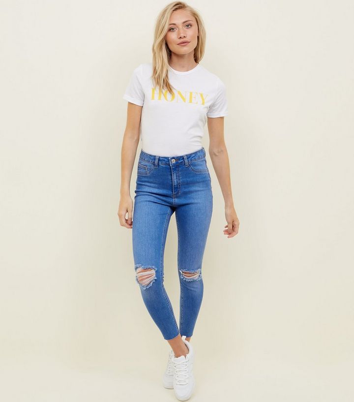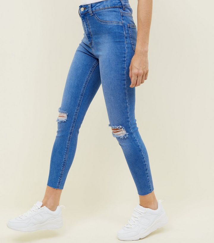 Hallie Hellblaue Superenge Skinny Jeans Mit High Waist Und Rissen New Look