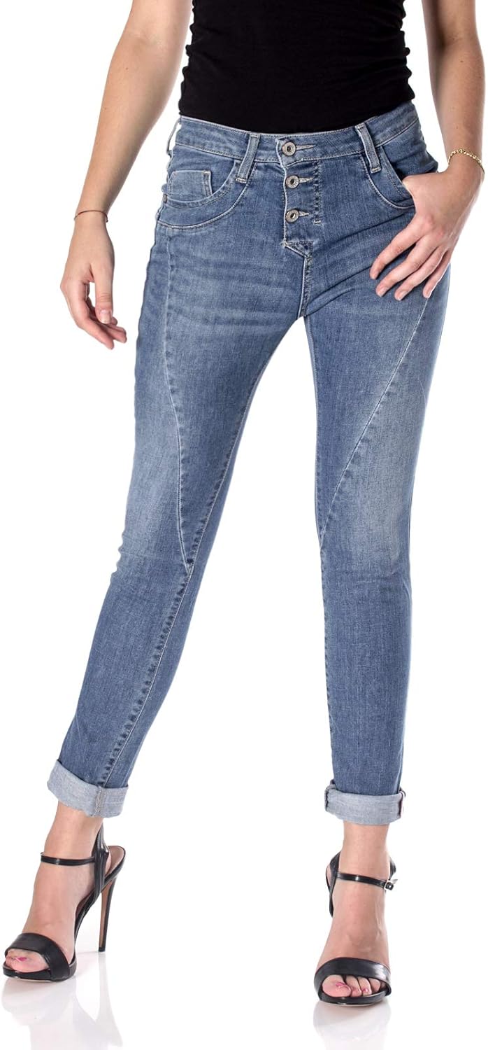 Damenmode Mega Mozzaar Button Chino Boyfriend Jeans Baggy Hose 34 42 Blau Kleidung Accessoires Fotolli Com