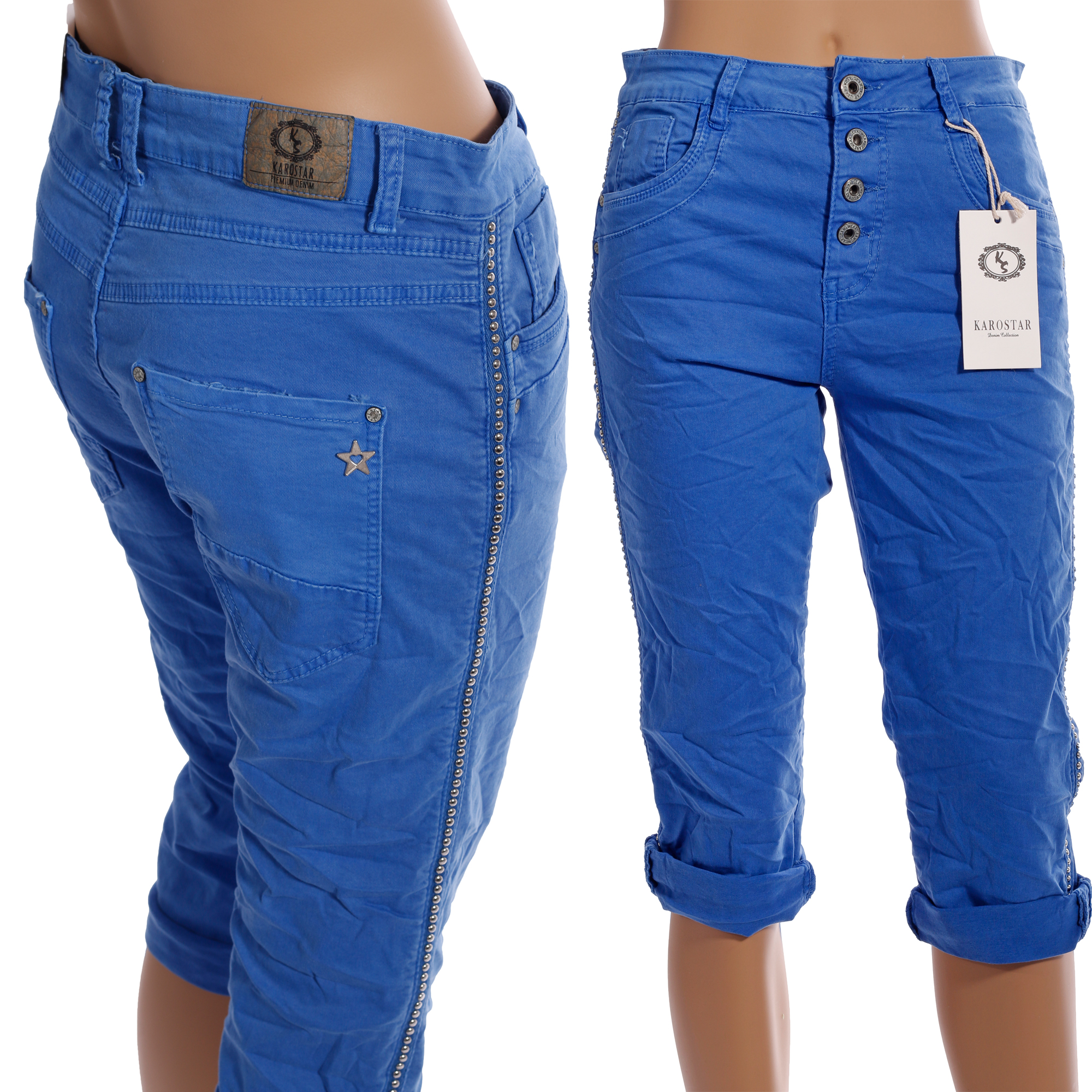 7 8 Lange Nietenstreifen Gr Karostar Baggy Jeans Damen Capri Cropped 36 48 Kleidung Accessoires Damenmode