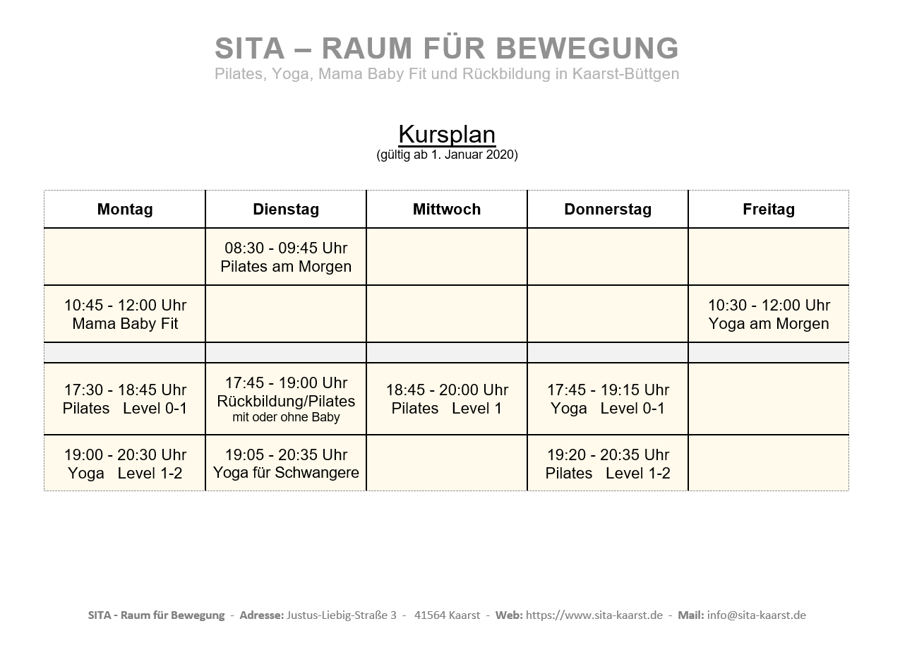 Kursplan Sita Raum Fur Bewegung Pilates Yoga Yoga Fur Schwangere Mama Baby Fit Mama Baby Outdoor Und Ruckbildung In Kaarst Buttgen Www Sita Kaarst De