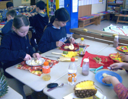 Kinder Beim Zubereiten Von Obstsalat Spielend Neue Worter Lernen