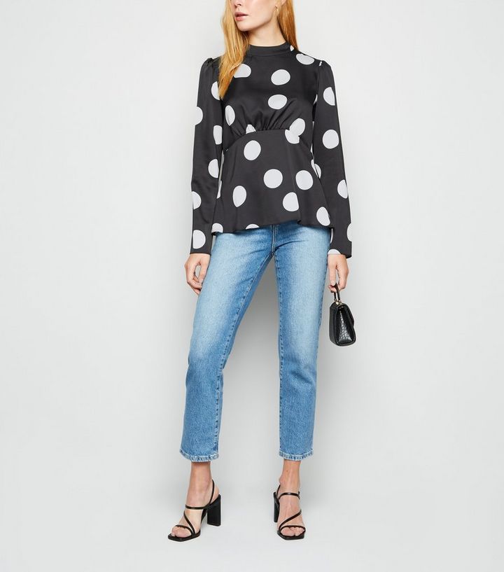 Schwarze Bluse Aus Satin Mit Grossen Punkten New Look