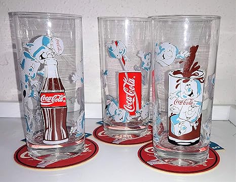 Amazon De Glas Glaser Retro Vintage 80 Ziger Jahre 3 X 0 3 Liter Eiswurfel Coca Cola Allways