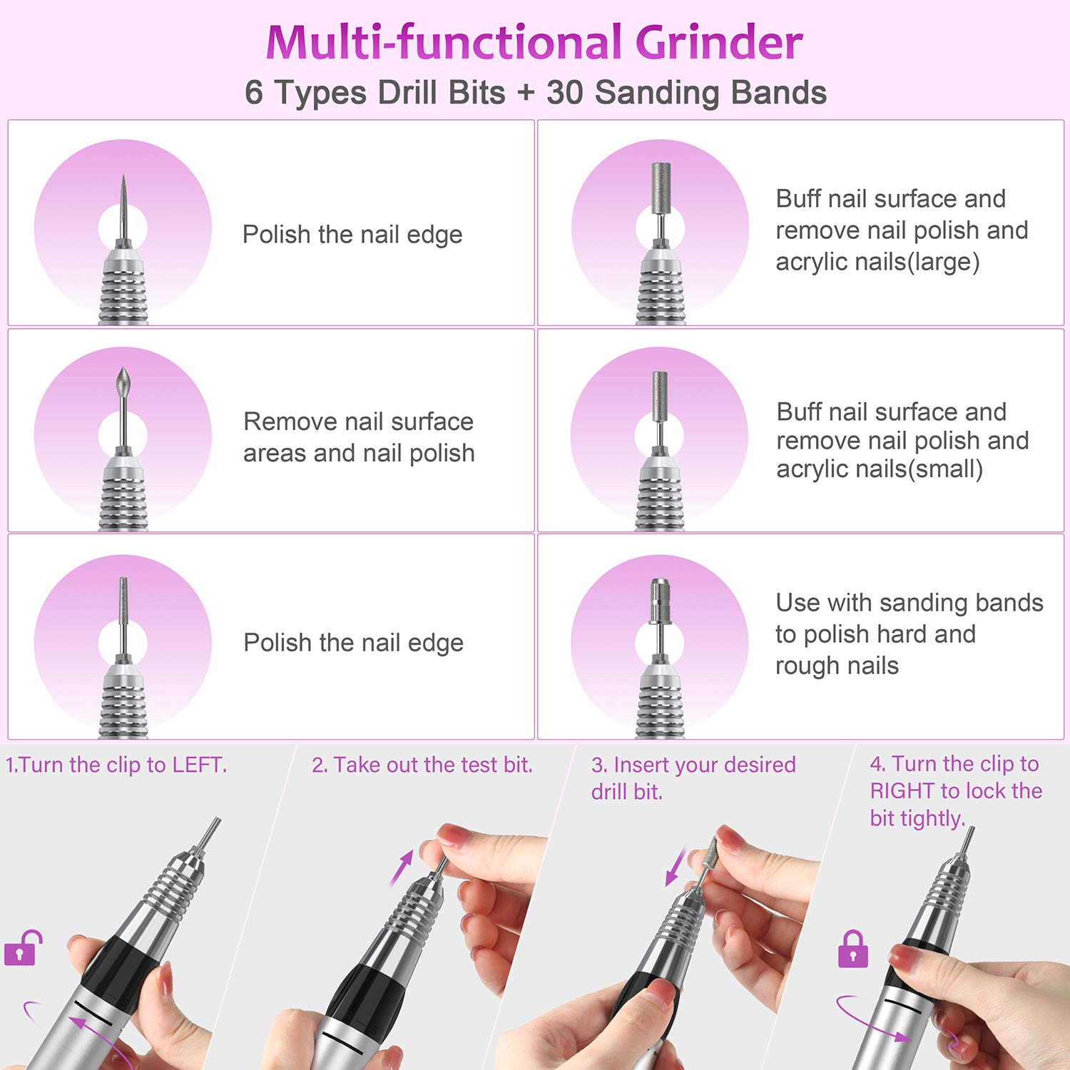 Nagelfraser Electribrite rpm Elektrische Nagelfeile Fur Gelnagel Diy Manikure Pedikure Set Mit 6 Aufsatzen Schleifbander Und Led Lampe Rosa Amazon De Beauty