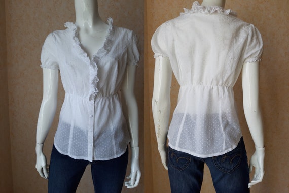 Vintage Viskose Bluse Damen Weissen Stoff T Shirt Bluse Grosse M Etsy