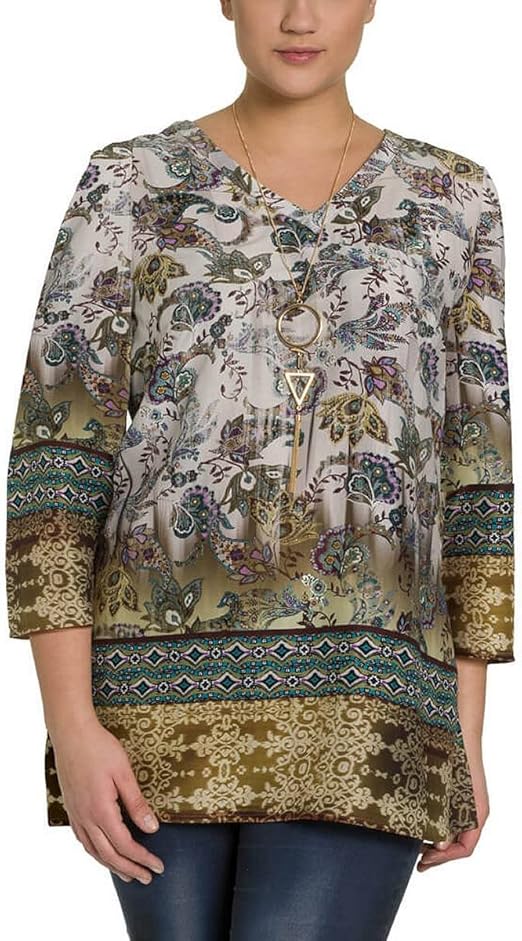 Seeyou Tunika Shirt Damen Bluse Khaki 3 4 Arm Viskose Paisley Muster All Over Print Grosse 56 Amazon De Bekleidung
