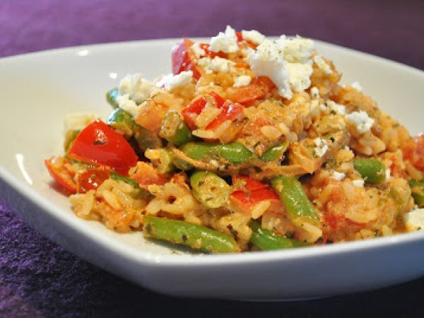 Griechische Ofengemuse Reispfanne Mit Feta Vegetarische Hauptspeise