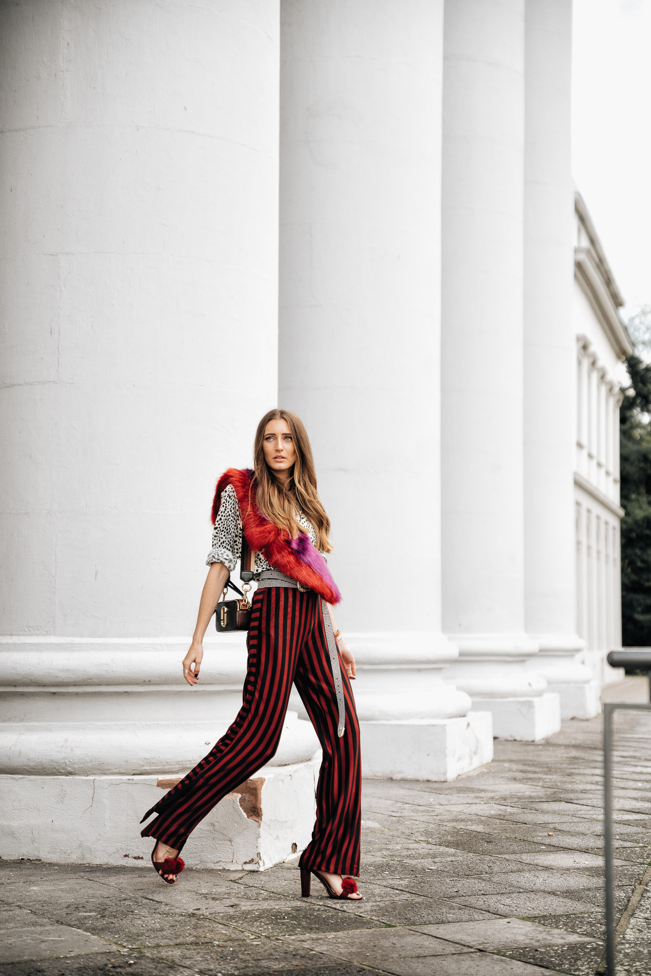 Rot Karierte Hose Karierte Hose Kombinieren Karo Muster Fake Fur Jacke Kombinieren Schwarze Fake Fur Blogger Outfits Fashion Blogger Outfit Fashion Blogger