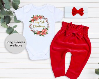 Baby Unisex Baby First Christmas Stoff Strampler Rote Farbe Hose Hut Outfits Ebay
