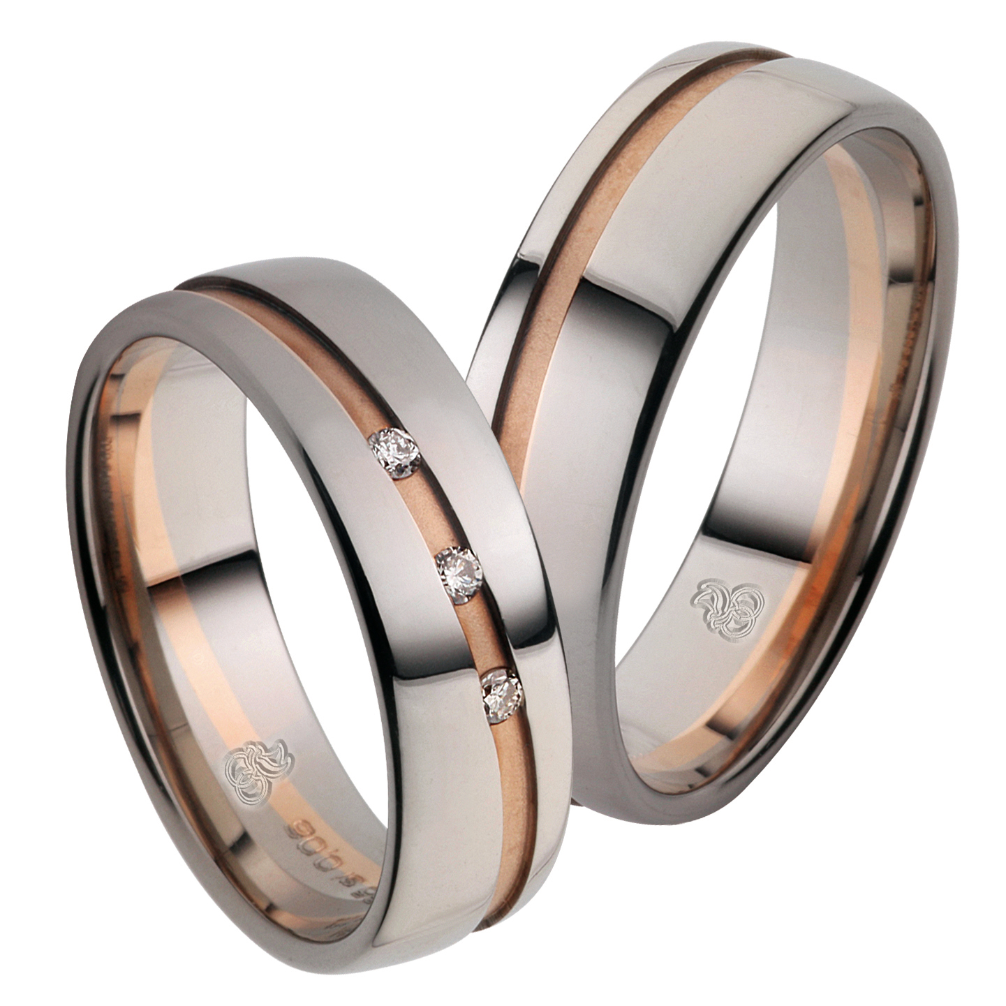 Zauberhafte Partnerringe In Palladium 500 Rosegold Mit Diamanten