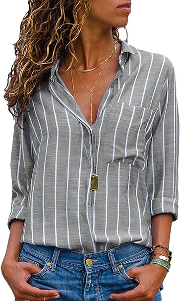 Aitosula Bluse Gestreift Damen Hemd Oberteile V Ausschnitt Lose Casual Chiffon Langarm T Shirt Top Tunika Elegant Langarmshirt Streifen Grau Weiss L Amazon De Bekleidung