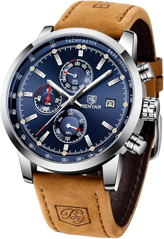 By Benyar Herren Uhr Analogue Quartz Chronograph Uhr Manner Mode Business Military Sport Armbanduhr Mit Leder Armband 30m Wasserdicht Elegant Geschenk Fur Manner Amazon De Uhren