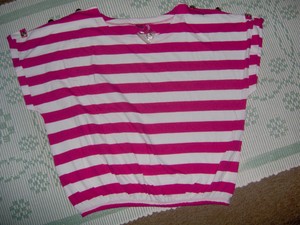 Damen T Shirt 42 44 Cotton Pink Weiss Blockstreifen Ebay