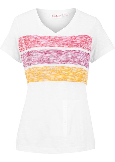 Baumwoll T Shirt Mit Blockstreifen Kurzarm Weiss Rot Gelb Bedruckt Damen Bonprix De