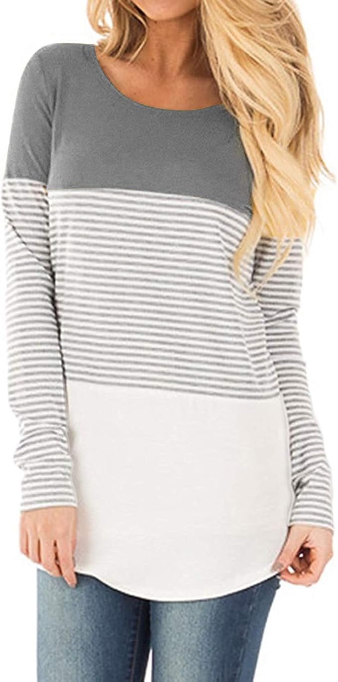Ajj Damen Bluse Mit Rundhalsausschnitt Dreifarbig Blockstreifen Freizeit Top Grau Xxx Large Amazon De Bekleidung