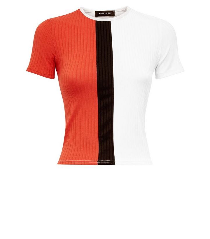 Geripptes T Shirt In Blockstreifen In Hellorange New Look