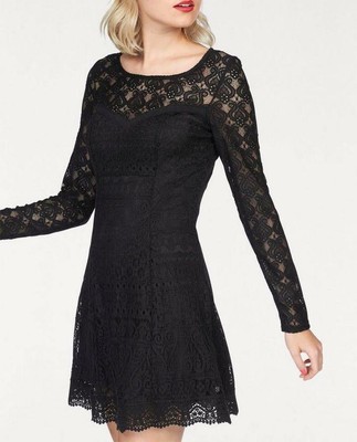 Ajc Damen Kleid Langarm Kurz Rundhals Spitzen Schwarz Gr 38 Neu Ebay