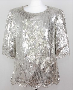 Silber Blumenmuster Pailletten Oberteil Grosse M 470 Ebay