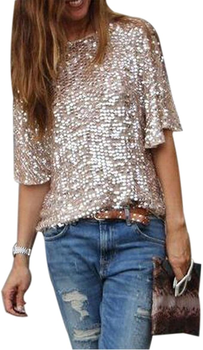 Shobdw Damen Pailletten Top Shimmer Glitter Lose Kurz Armel Party Tunika Oberteil Frauen Sommer Freizeit Bluse Pailletten Sparkle Cocktail Party Lassige Crop Tops Shirt Oberteile Damen Elegant Amazon De Bekleidung