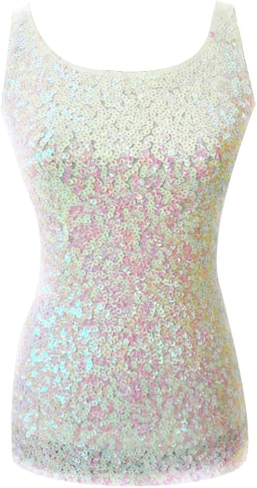 Damen Tank Top Glitzer Armellos Shirt Pailletten Oberteile Weiss Amazon De Bekleidung
