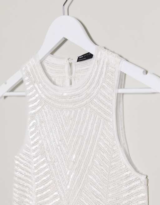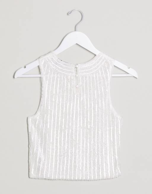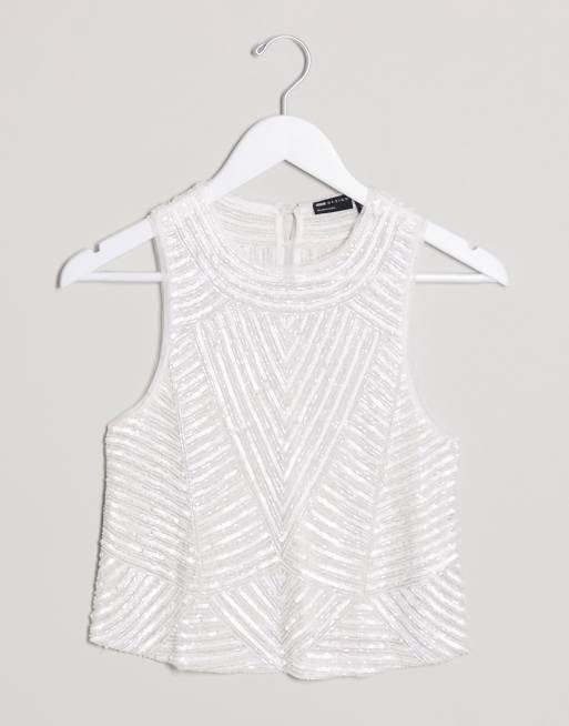Asos Design Weisses Pailletten Oberteil Mit Geometrischem Muster Asos