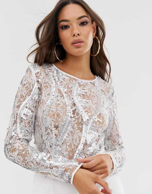 Club L London Silberfarbenes Pailletten Oberteil Mit Wickel Und Bindedetail Kombiteil Asos Miami Outfits Outfit Pailletten