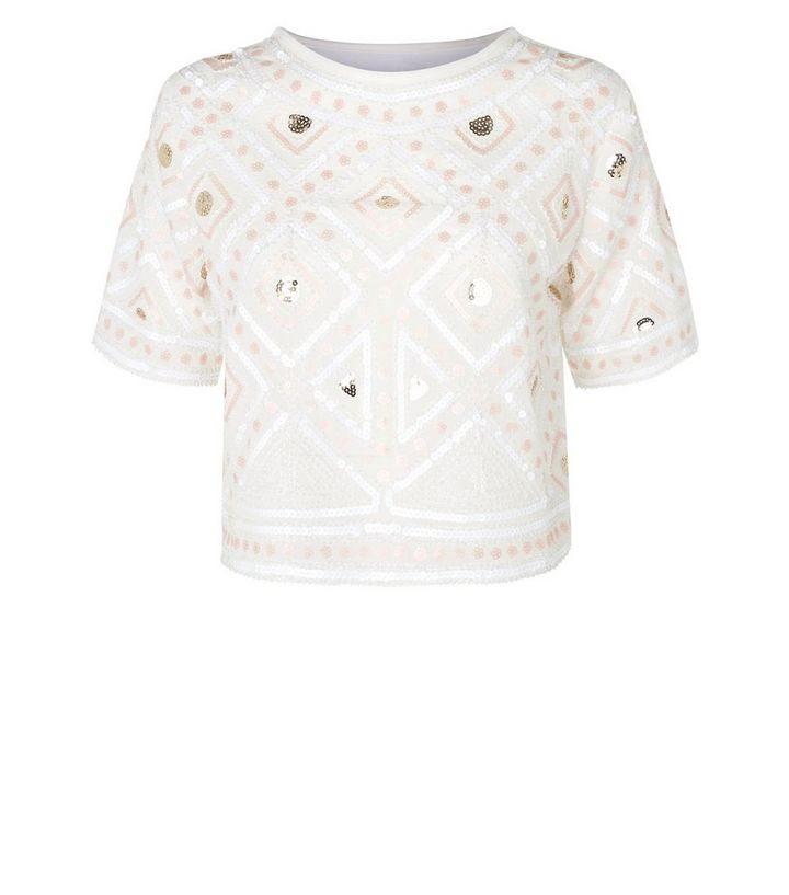 Cameo Rose Weisses Top Mit Geometrischem Muster Mit Pailletten Und Perlen New Look