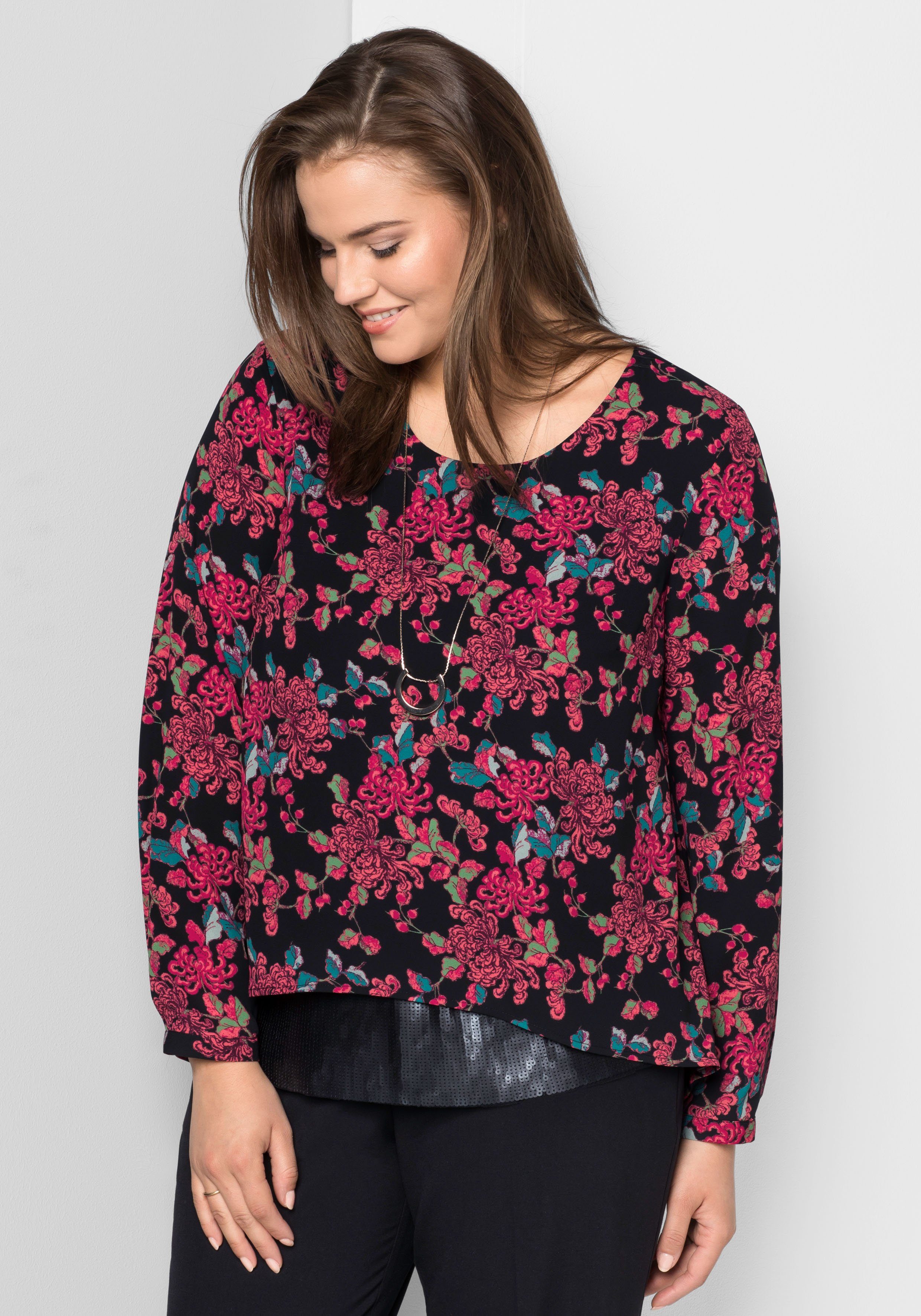 No Secret Langarm Tunika Damen Schwarz Mit Blumen Und V Ausschnitt Mode Fur Mollige Damenmode Online Shop Fur Grosse Grossen