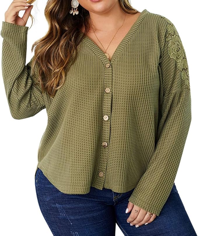 Lopily Basic Oberteile Grosse Grossen Damen Unregelmassige Saum Bluseshirts Mit Knopfen Ruschen Saum Sweatshirt Damen Long Shirts Damen Herbst Blusen Tuniken Fur Mollige Bis Gr 46 Grun 42 Amazon De Bekleidung