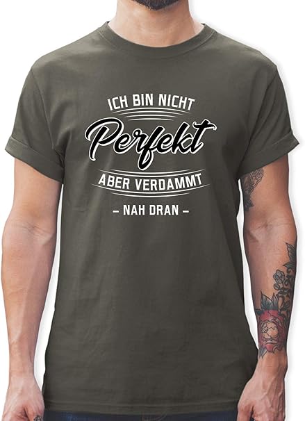 Shirtracer Spruche Ich Bin Nicht Perfekt Aber Verdammt Nah Dran Tshirt Herren Und Manner T Shirts Shirtracer Amazon De Bekleidung