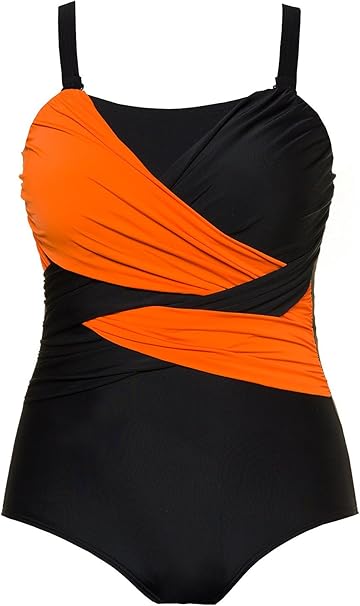 Ulla Popken Damen Grosse Grossen Bis 58 Badeanzug Zweifarbige Drapierung Verstellbare Trager Softcupbuste Unterbrustband Schwarz Orange 64 90 64 Ulla Popken Amazon De Bekleidung