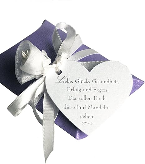 TopAngebote für Mandelspruch in Gastgeschenke für Hochzeiten online entdecken bei eBay Top Marken Günstige Preise Große Auswahl. Gastgeschenke zur Hochzeit selber machen Eine Hochzeit ist ein unvergesslicher im Leben – und das nicht nur für das Brautpaar, sondern auch für seine Gäste Darum freuen sich die Eingeladenen ganz sicher über eine kleine Aufmerksamkeit, die sie auch noch weit nach der Eheschließung an die schönen Momente erinnert. Ein Prost auf die Liebe!.