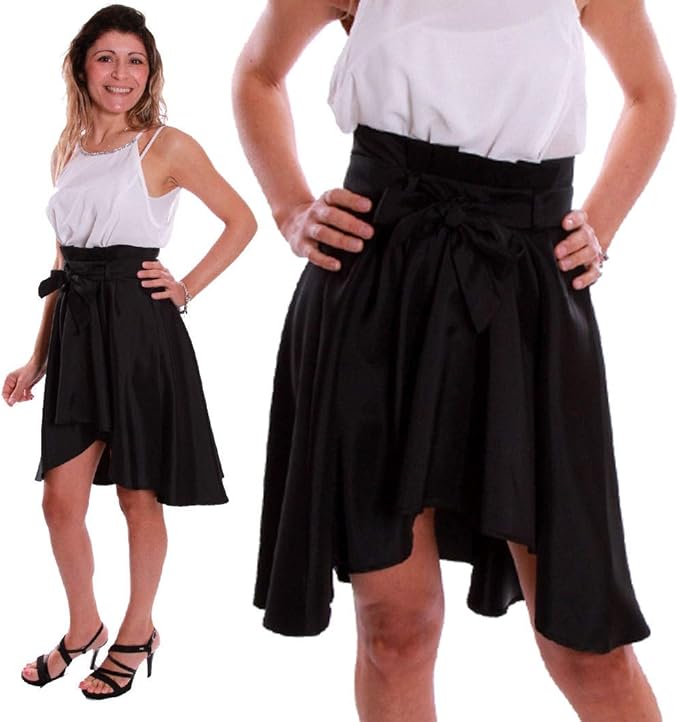 Fresh Lemons Damen Viskose Longform Paperbag Rock Schwarz