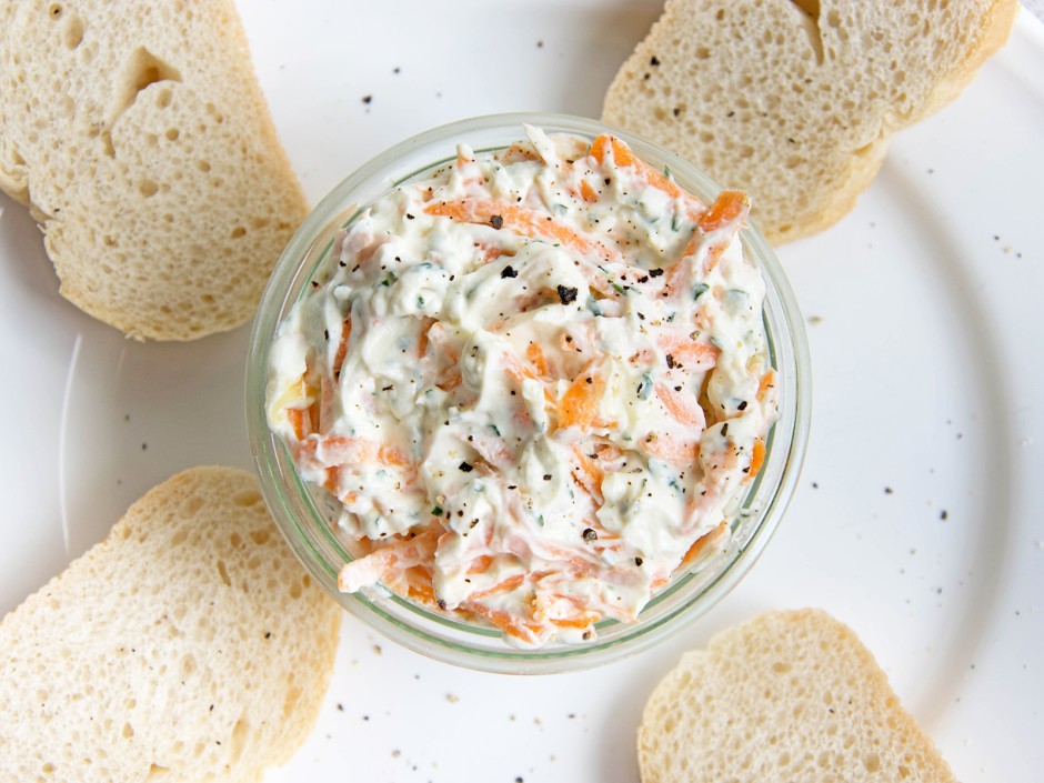 Herzhafter Huttenkase Aufstrich Auf Vollkornbrot Rezept Eat Smarter