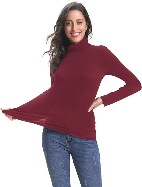 Abollria Damen Dunn Rollkragenpullover Basic Shirt Langarm Leicht Stretch Rolli Als Unterhemd Weinrot Amazon De Bekleidung