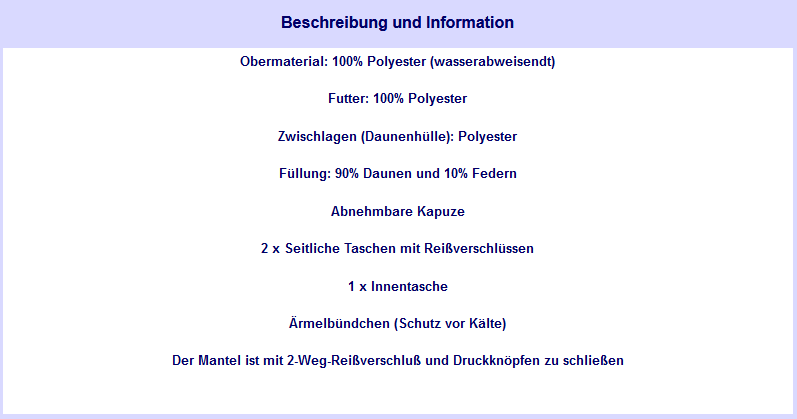 Mischungsverhältnis von Daunen und Federn Daune (90/10) heißt beispielsweise, dass die Daunenjacke mit einer Mischung aus 90% Daunen und 10% Federn gefüllt ist Das ist ein sehr gutes Verhältnis, denn eine geringe Menge Federn muss den Daunen beigemischt werden, um sie zu stabilisieren und ein Verklumpen zu vermeiden. Die Top Favoriten Suchen Sie den Wintermantel Damen Daunen Lang Ihren Wünschen entsprechend Welche Informationen vermitteln die amazonde Rezensionen?. Auf was Sie zuhause beim Kauf Ihres Wintermantel Herren Lang achten sollten!.