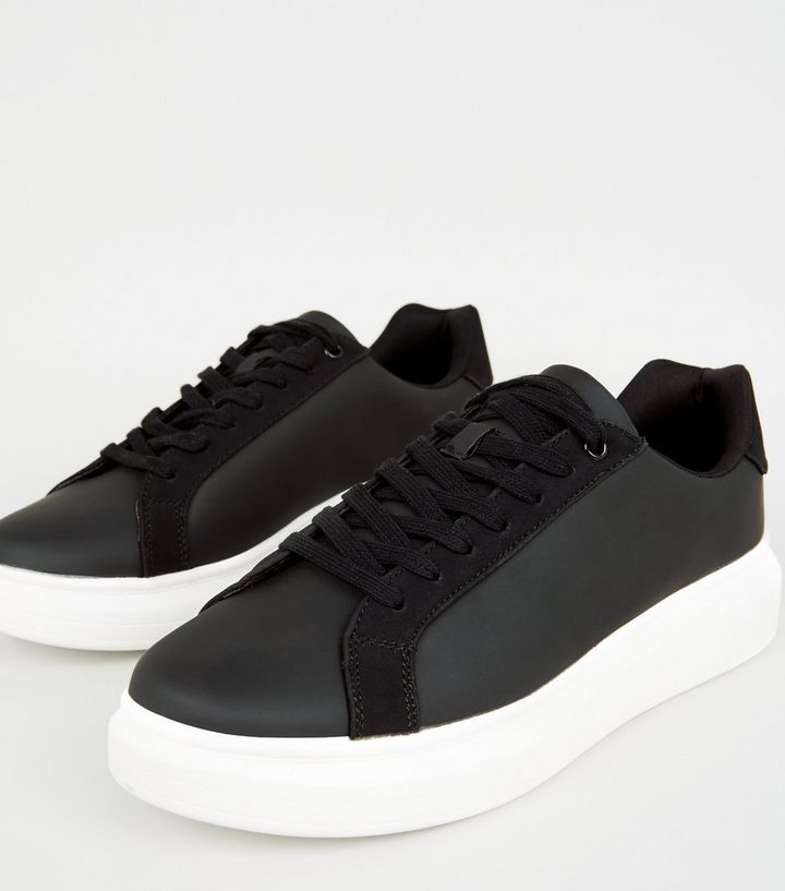 Schwarze Sneaker In Leder Optik Mit Dicker Sohle New Look