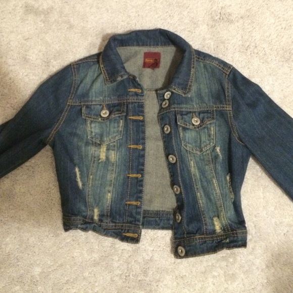 Harambee Cropped jean jacket $12 $49 Size S (Juniors) Highway Jeans;. Wear a darkwashed women's denim jacket with midrise jeans for an instant slimming effect and casual, relaxed vibe To keep things edgy and trendy, go with a mediumwashed trucker jacket with distressed details to wear with your favorite tee Or, dress things up a bit by wearing a fitted denim jacket paired with your skirt, dress, or slacks. Highway Destroyed Fray cropped denim jacket Vintage wash with allover destruction Button front with button flap chest pockets Faux hand pockets Long sleeves with button cuffs Cropped frayed hemline 100% cotton Machine wash Imported Model is wearing a size small.