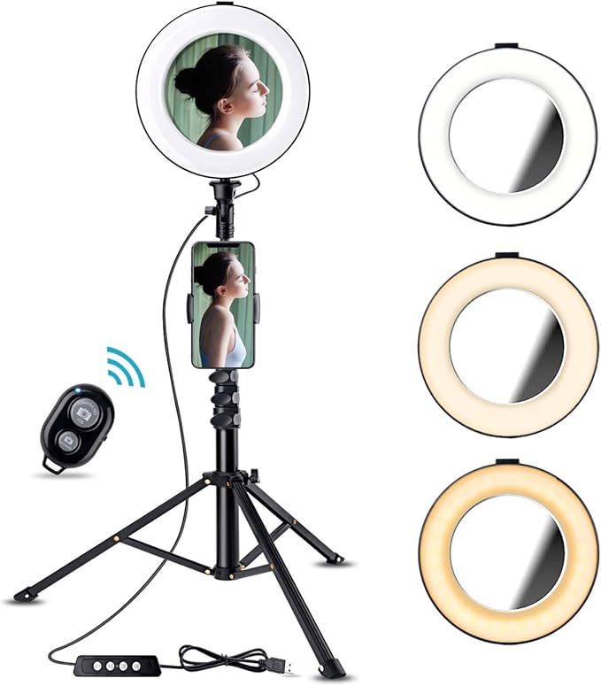 Selfie Ring Licht Mit Stativ Und Handy Halterung Fur Live Stream Youtube Videos Bosledy Makeup Lampen Mit Spiegel Mini Led Kamera Ringlicht Fur Fotografie Amazon De Elektronik
