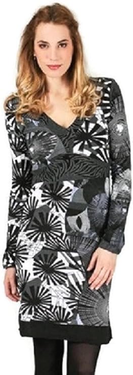 4274 Aller Simplement Damen Kleid Patchwork Etuikleid Langarm Longshirt Winter Tunika Schwarz Grau M 38 Amazon De Bekleidung