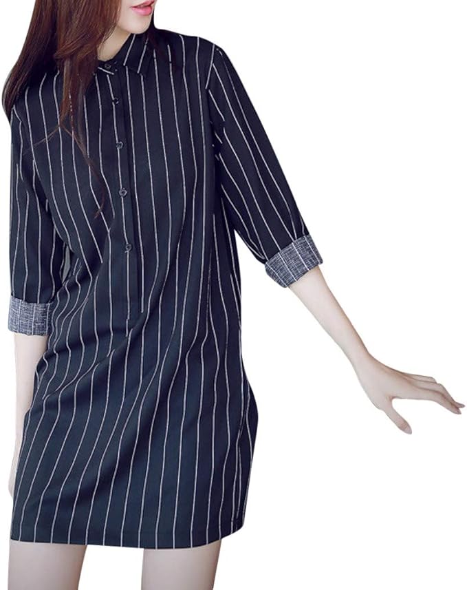 Izhh Mode Damen Shirt Kleid Langarm Revers Vertikal Streifen Taillenband Kleid T Shirt Kleider Amazon De Bekleidung