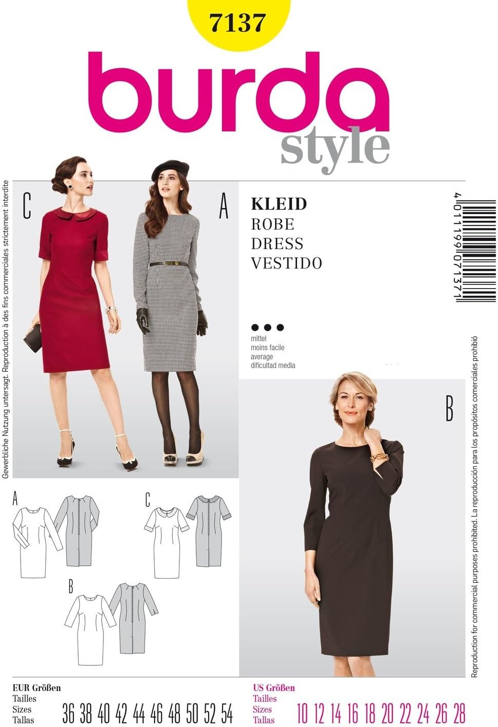 Burda Schnittmuster 7137 Kleid Shiftkleid Vestido Cambio De Vestir Gr 36 54 Amazon De Kuche Haushalt